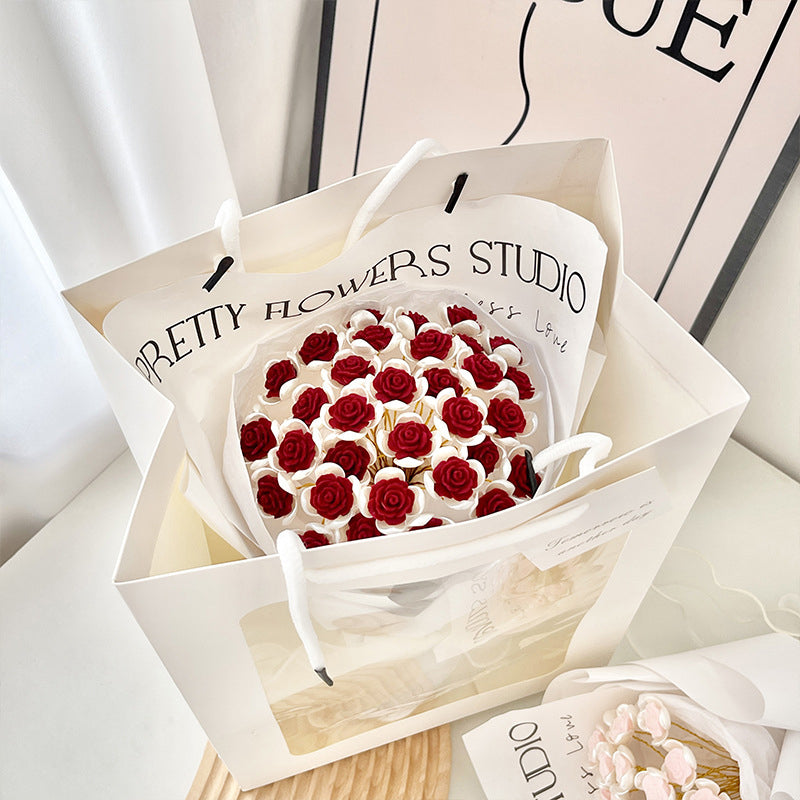 KOMPLETT DIY-GAVESETT – Alt du trenger i én boks: Lag den perfekte gaven med letthet. Dette alt-i-ett-bukettsettet inkluderer myke PVC-blomster, dekorativt innpakningspapir, bånd og en matchende gavepose. Enten det er for en klasseromsaktivitet, en gjennomtenkt overraskelse eller et sesongbasert håndverk, er alt klart til bruk – ingen ekstra verktøy eller forsyninger nødvendig.