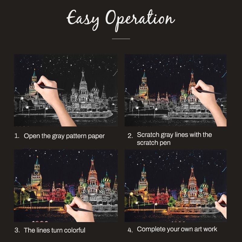 - [SKRAPE PAPIR] Skrap bort linjene til de delikate designene ved hjelp av skrapeverktøyet ditt, og se kunstverkene ta form, grå linjer veileder alle i prosessen med å skape.