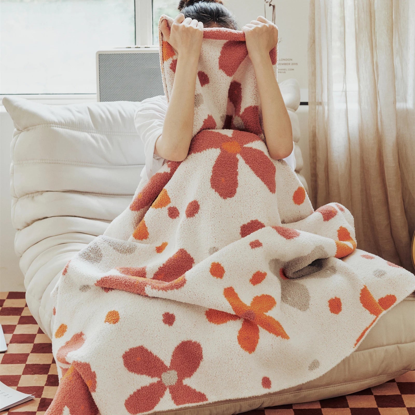 Opplev maksimal varme og stil med den Fargerike Blomstrete Nedihende Strikkede Knepleddet, den perfekte følgesvenn for hjemmet ditt, kontoret eller utendørs avslapning. Designet med et chic boho-blomsterdesign, tilfører dette myke mikrofiberpleddet et snev av farge og komfort til ethvert rom. Enten du krøller deg sammen med en bok, ser på TV, eller tar en rask lur, holder dette pleddet deg varm og koselig. Lett, men utrolig myk, er det et utmerket valg for alle årstider, spesielt om våren og høsten.Allsidig for Enhver Anledning