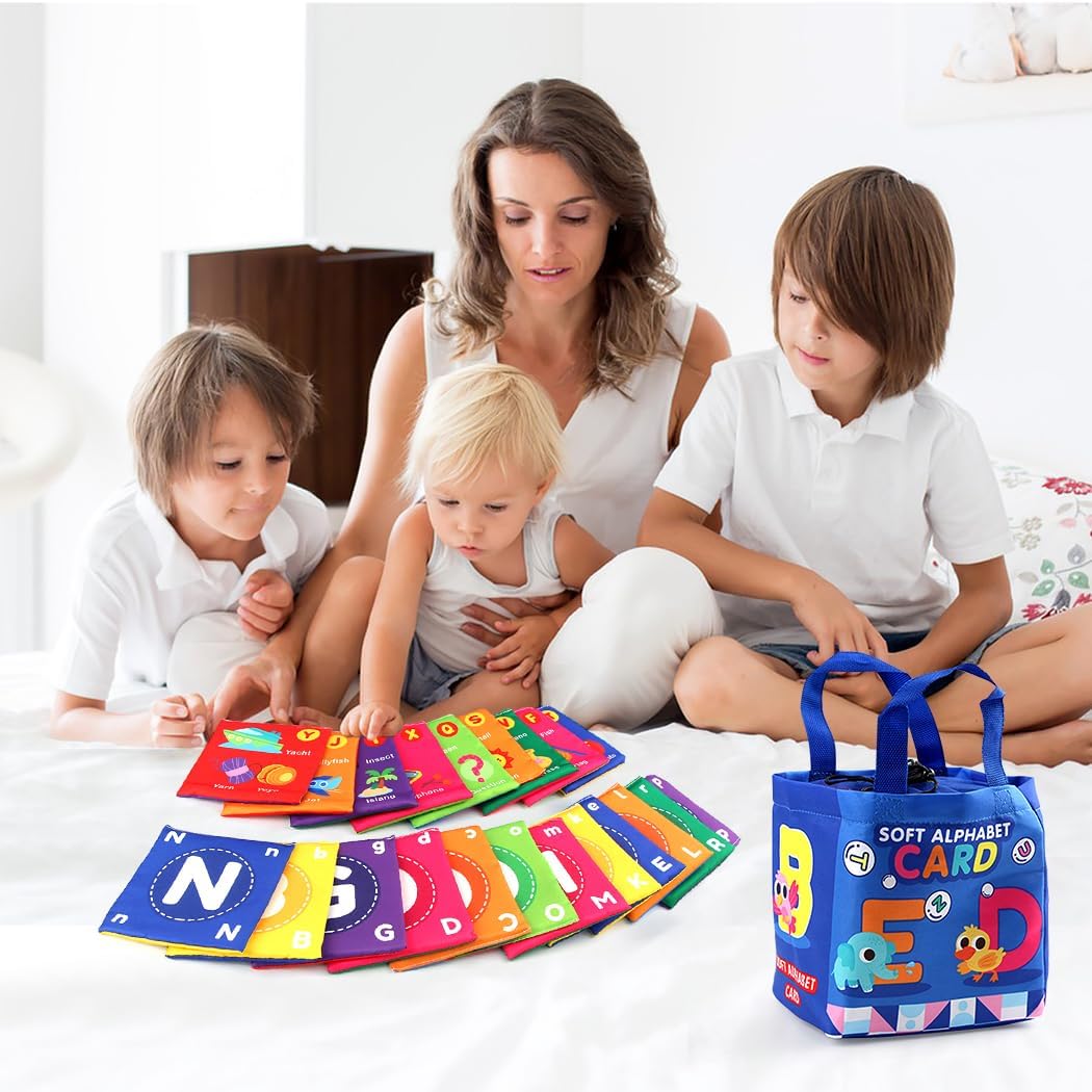 Hjelp ditt lille barn med å begi seg ut på en spennende reise gjennom alfabetet! Disse vibrante bokstavkortene er ideelle for små barn som begynner å utforske bokstaver og ord. Med livlige farger, engasjerende illustrasjoner og en myk tekstur, gjør disse kortene læring morsom mens de bevarer essensen av lek.