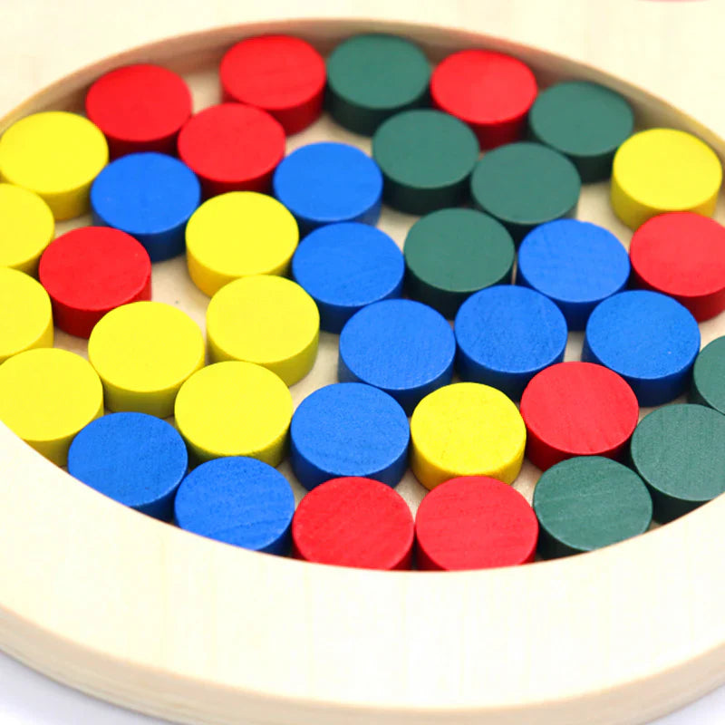 ColorSorter er et nydelig brettspill i tre som gjør det mulig for barn å lære om farger og former på en kreativ og engasjerende måte. Barn vil glede seg over å sortere fargerike brikker mens de utvikler koordinasjonen og problemløsningsevner. Uten strenge regler fremmer dette spillet kreativitet og selvstendig tenkning, noe som gjør hver lekestund spesiell!