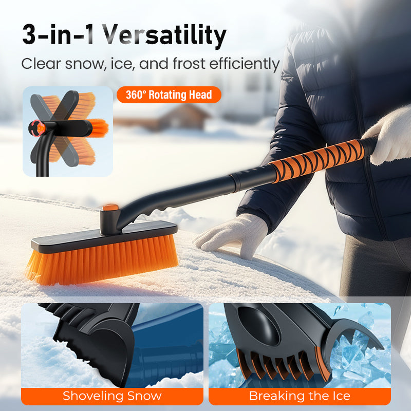✔️ 360° roterende børstehode for vanskelige områder: Børstehode kan justeres og låses i flere vinkler, noe som gjør det enkelt å fjerne snø og is fra alle sprekker og kanter på kjøretøyet ditt.
