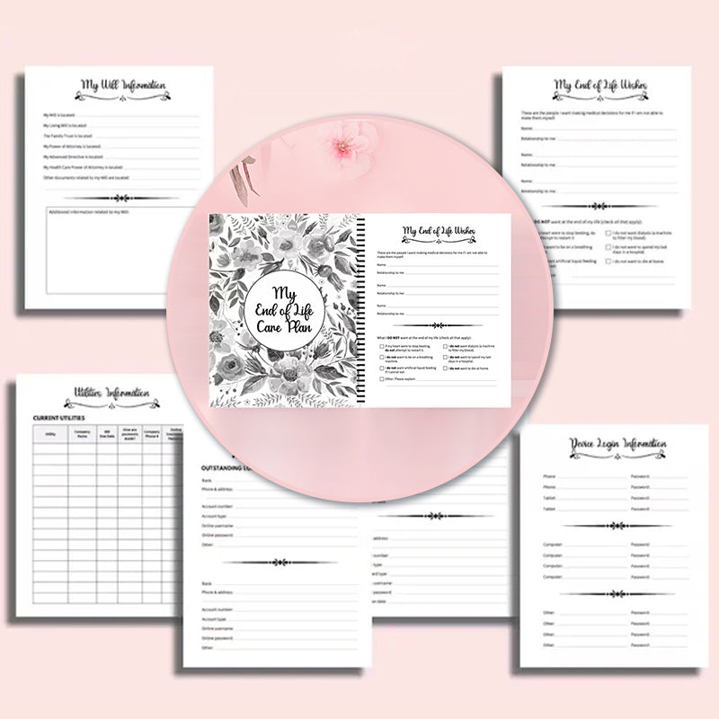 Vår komplette og nødvendige Planlegger for Livets Slutt gir alt det dine kjære trenger i tilfelle din bortgang eller tap av evne... fra finansielle opplysninger til forsikringsdetaljer og spesifikasjoner for livsbehandling på livets slutt og mer!
