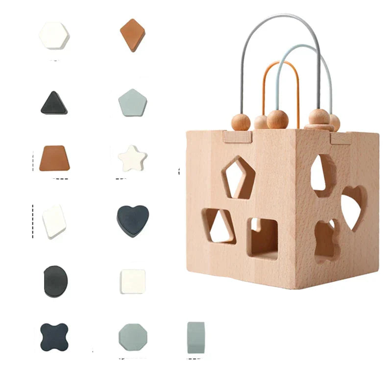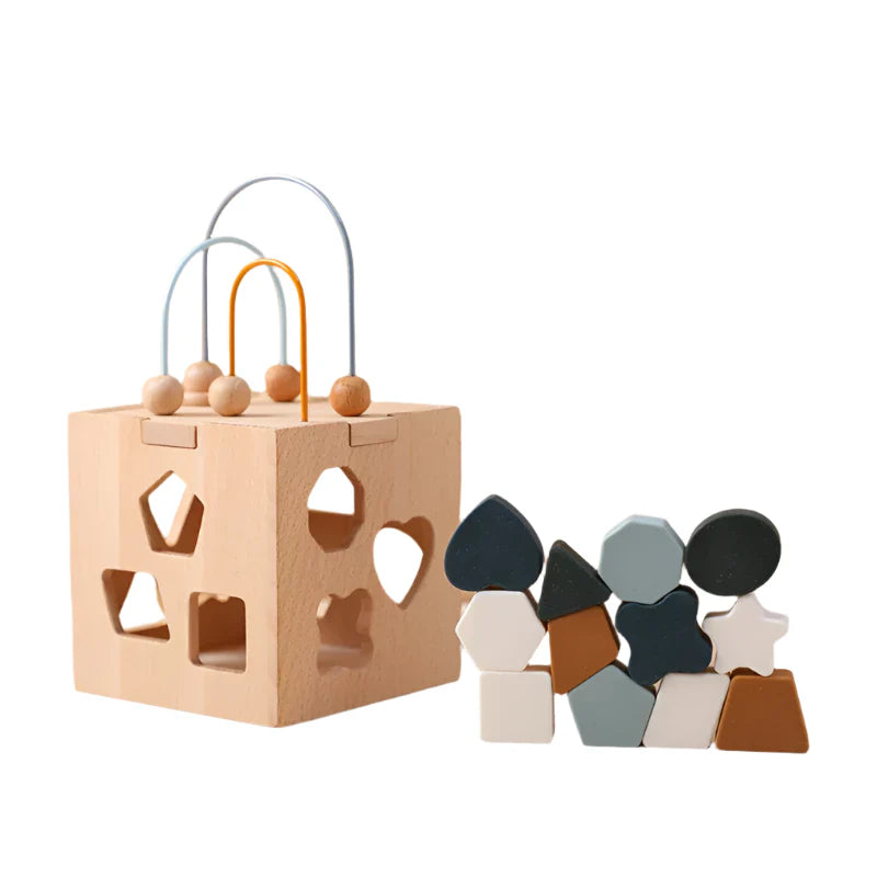 GeoPlay | Formgjenkjenning og moro - Tre- og silikonsorteringsblokk med geometriske figurer