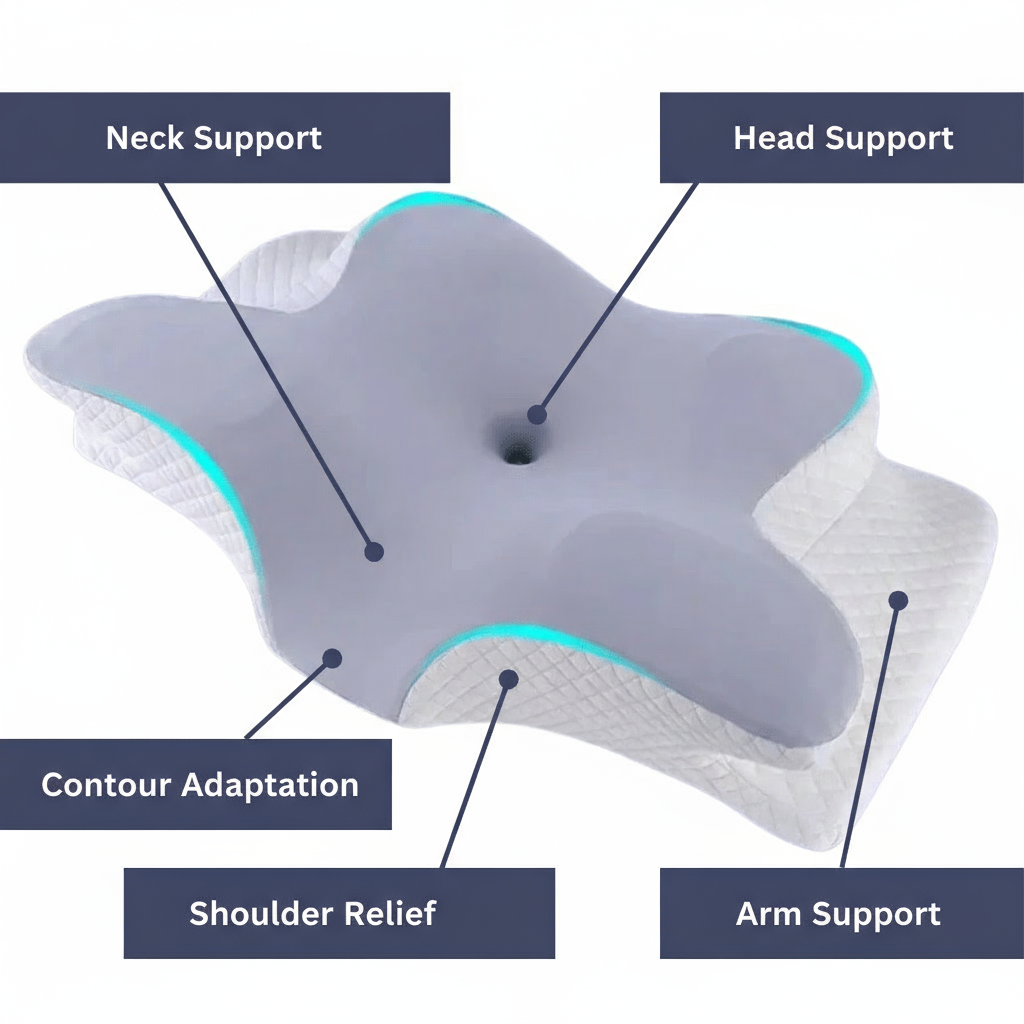 Ergonomisk kontur for nakke- og ryggradslindring