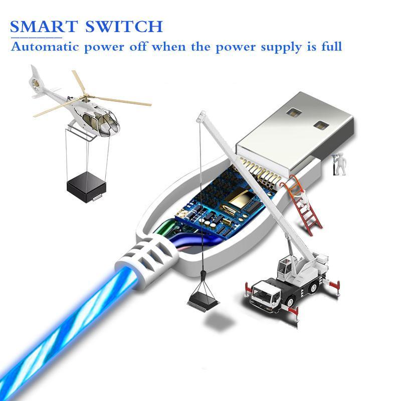 "Se" ladningsstrømmen som strømmer fra laderen eller datamaskinen din inn i telefonen din. USB-kabelens lys beveger seg i takt med energiflowen takket være Elektroluminescent (EL) Teknologi.