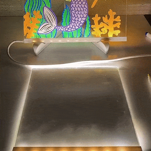 - Tegn eller skriv dine kunstverk på akrylglasset med den medfølgende pennen.