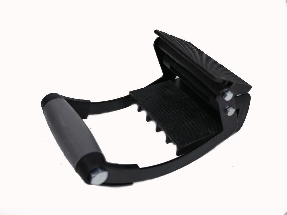 Gorilla Gripper er produsert med epoxy-belagt stålarmering og ekstremt slitesterke glassfylte nylonpolimer gripplater. Enheten har en kontinuerlig selvjusterende klemme, så det er ikke nødvendig å justere bredden for hver bruk, og den kan bære opptil 150 lbs vekt.