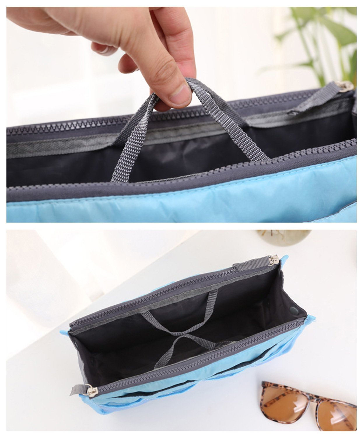 • Flere lommer. 13 lommer gir deg rikelig med plass til alt du trenger. Sminke, hårstrikker, lommebøker, telefoner … hvis du har det, vil denne organisatoren romme alt.