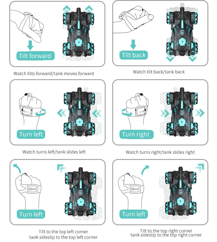 ● Dette er et radiostyrt tankkjøretøy med bevegelsesgjenkjenningsteknologi.
