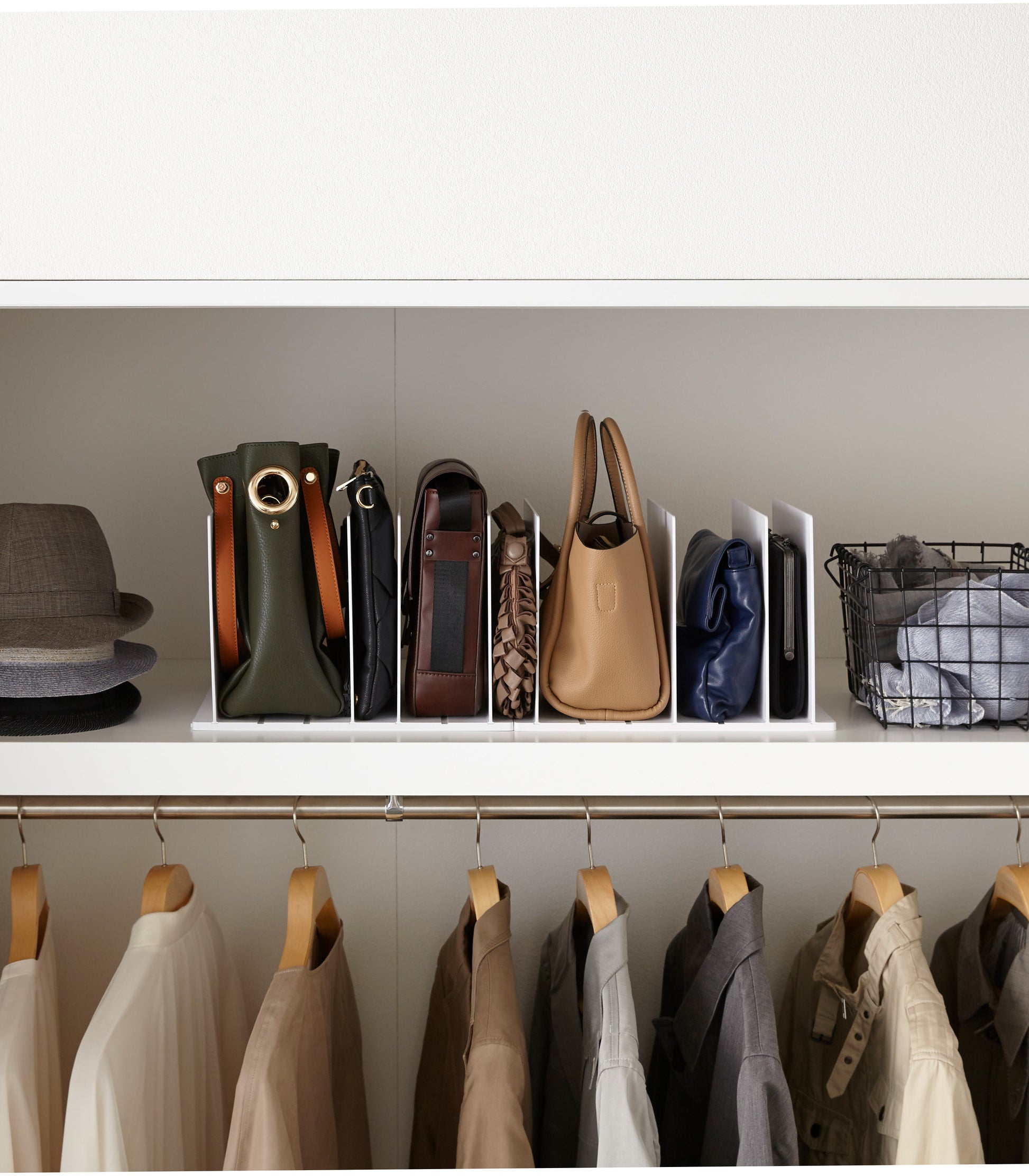 Tilpass organisatoren basert på dimensjonene til veskene dine for å holde dem stående, organisert og i perfekt orden. Endelig finnes det en løsning for å forhindre at dine kjære håndvesker blir klemt sammen i en kaotisk haug.
