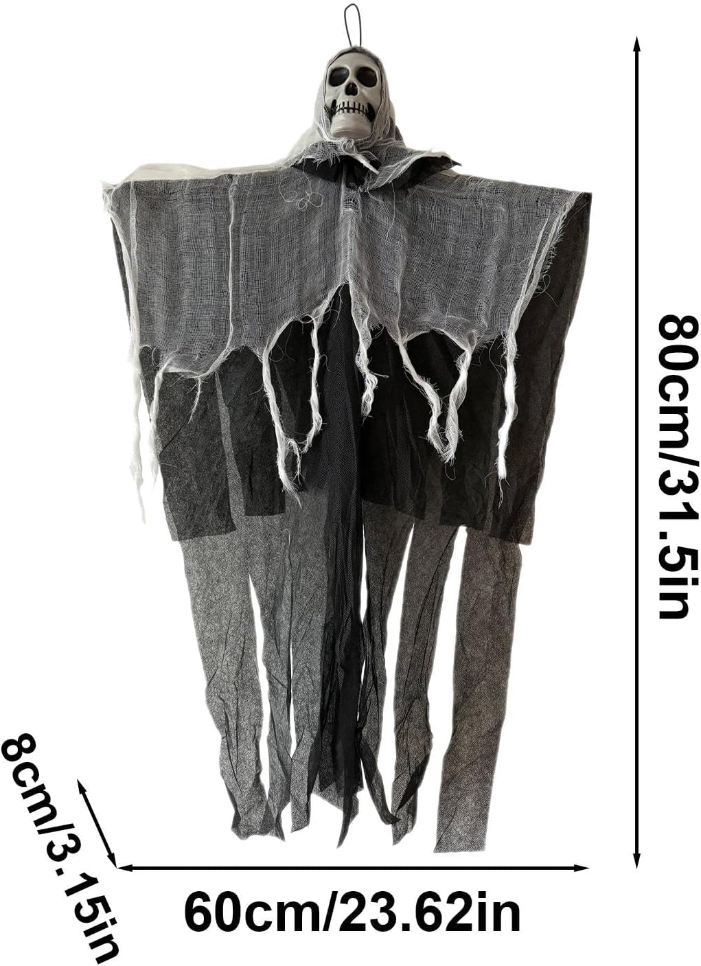 Hodeskallen har et tau, slik at du enkelt kan henge Halloween-spøkelset på trær, vegger, verandaer, takutspring osv. Legg til en morsom og spøkelsesaktig atmosfære til dine høytidsdekorasjoner, og liv opp Halloween-feiringen din med letthet.