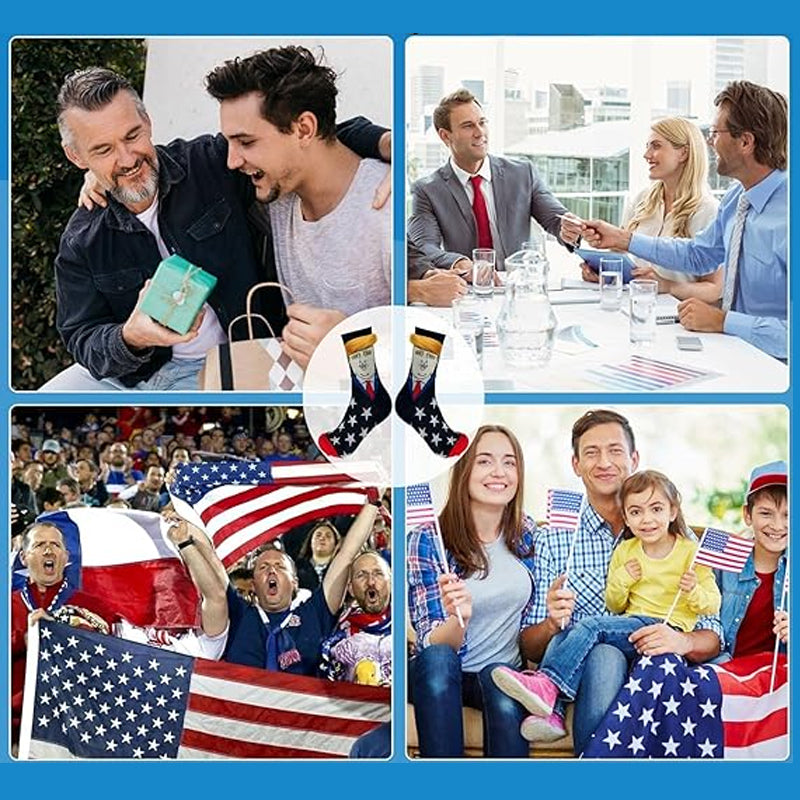 Unik Gaveidé: Disse morsomme sokkene er en fantastisk gave for Trump-entusiaster med en leken vri eller som en liten oppmerksomhet til feiringen av den fjerde juli.