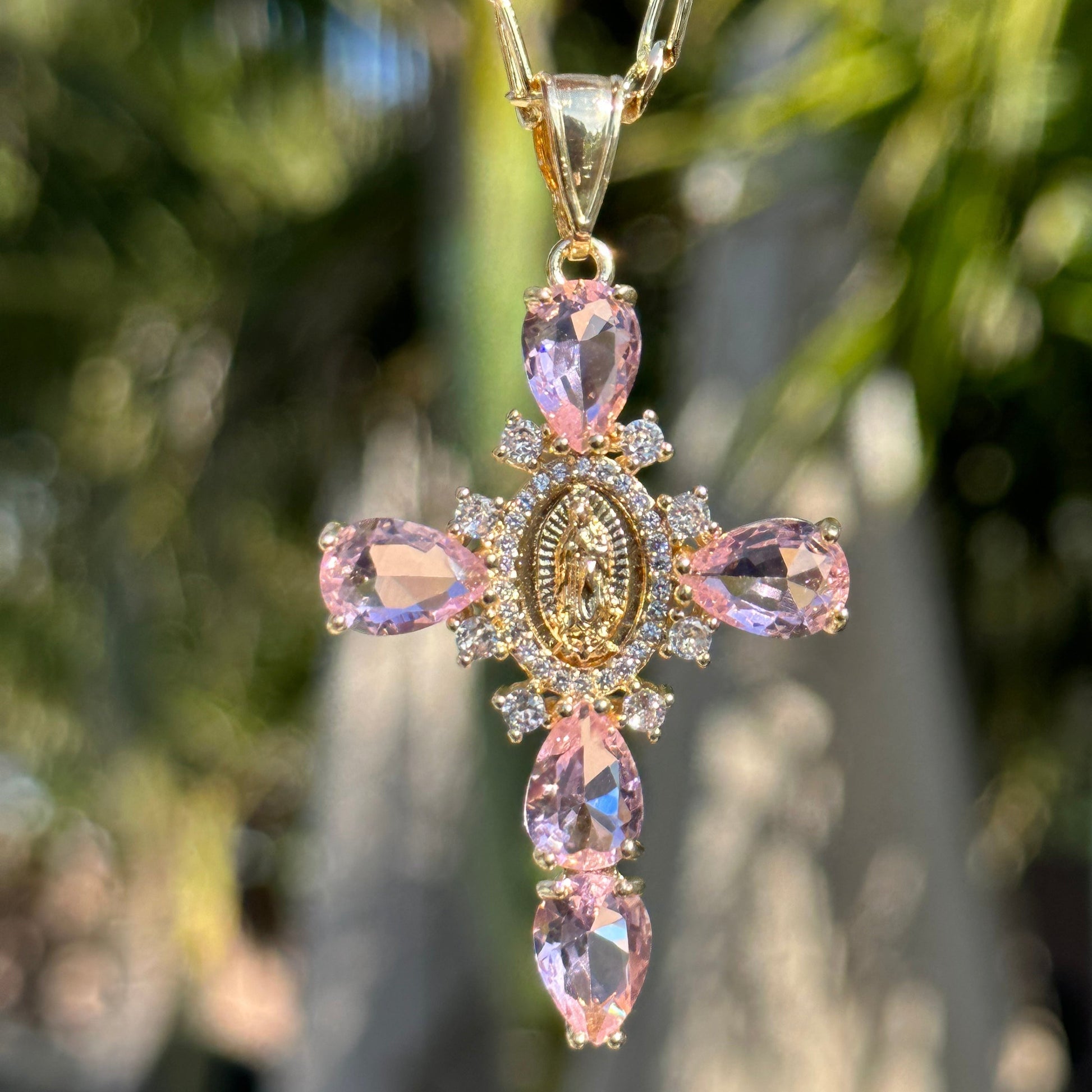 Jomfru Maria Krystall Zirkon Korsanheng Smykke For Kvinner