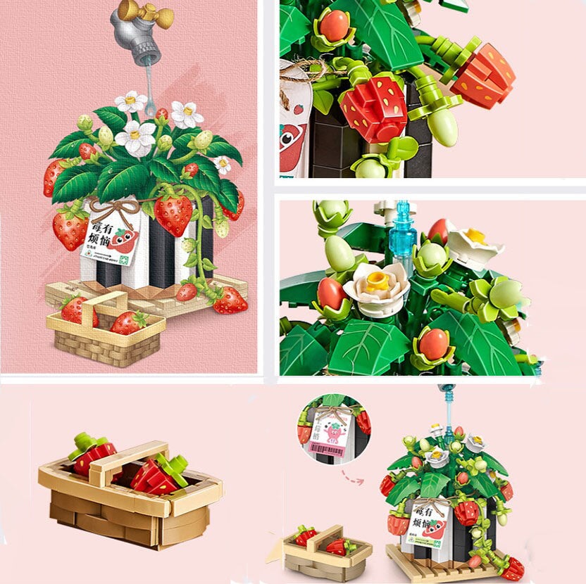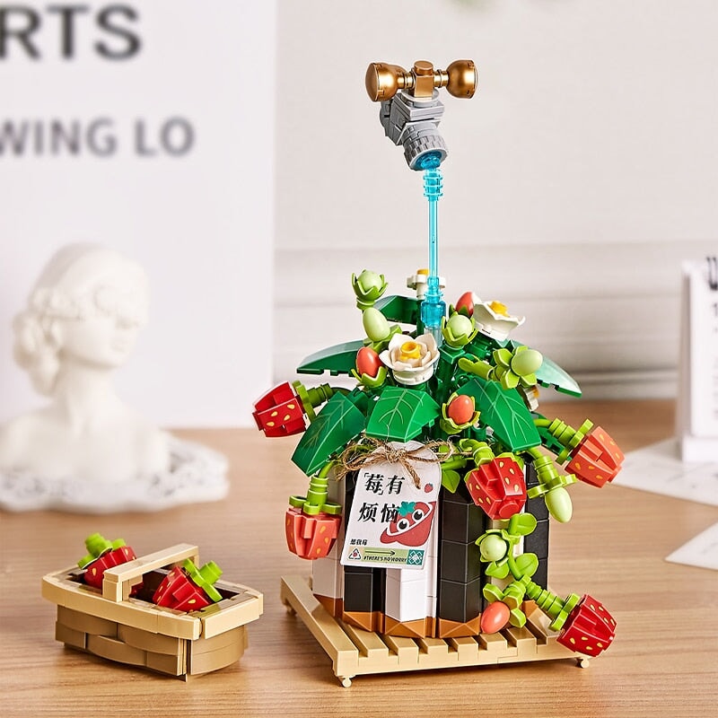 Norvo | Jordbærpotte & Rød Blomst Mikro Byggeklosser