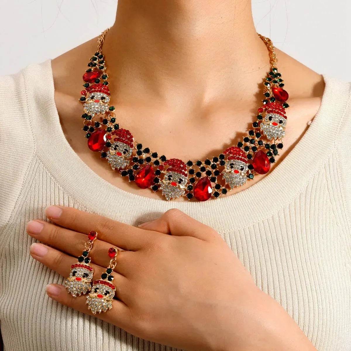 Bring litt ferieglede og glans til noen spesielle med dette juvelsettet til jul. Halskjedet og øredobbene har fargerike rhinstein, et skinnende nisse-design og et moteriktig utseende som enhver kvinne vil elske. Perfekt for å gi til din kone eller kjæreste (eller deg selv!).