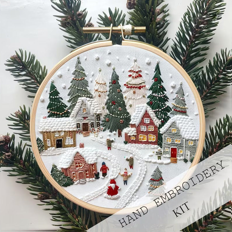- Dette vinterlige snølandsbybroderi-settet gjør det enkelt å lage din egen julefest.