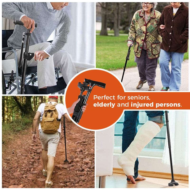 - ENKEL OG PRAKTISK FOR DAGLIG BRUK: Denne sammenleggbare stokken tilbyr optimal sikkerhet og utholdenhet samtidig som den forblir lett og behagelig å bruke. Ideell for eldre og personer med skader.