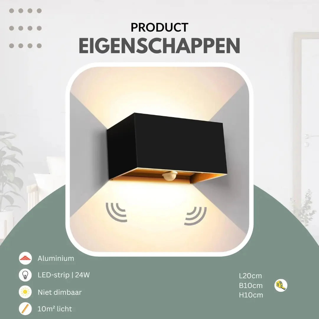 Laget av holdbar aluminium, har denne vegglampen en IP65 vanntett vurdering, noe som gjør den motstandsdyktig mot støv og fukt, og egnet for ulike værforhold. Den elegante svarte finishen komplementerer en rekke dekorstiler. Denne vegglampen har en integrert bevegelsessensor som registrerer bevegelse innen en rekkevidde på 3 til 5 meter, aktiverer automatisk lyset i svake lysforhold, og slår det av etter ett minutt uten aktivitet.
