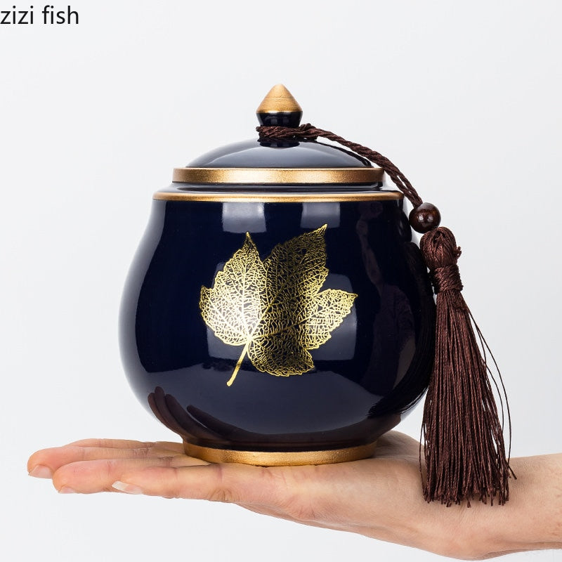 Norvo | Keramisk Tekanne Tea Cajon Teeboks Oppbevaring Te Beholder Fuktbestandig Forseglet Tank Oppbevaringsbeholder Godteri Krukke Oppbevaringsboks