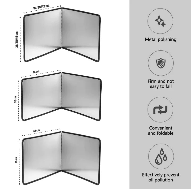 ● For enkel oppbevaring er sprutbeskytterne for stekepanner sammenleggbare, slik at de lett kan legges i et skap, en skuff eller et pantry etter bruk. Denne egenskapen bidrar til plassbesparelse.