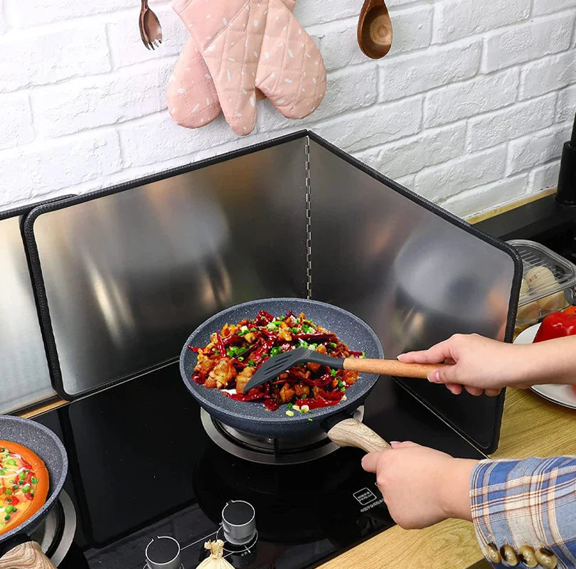 ● Når du forbereder mat på kjøkkenet, hindrer sprutbeskytterne effektivt sprut av matolje og beskytter både komfyren og området rundt mot søl.