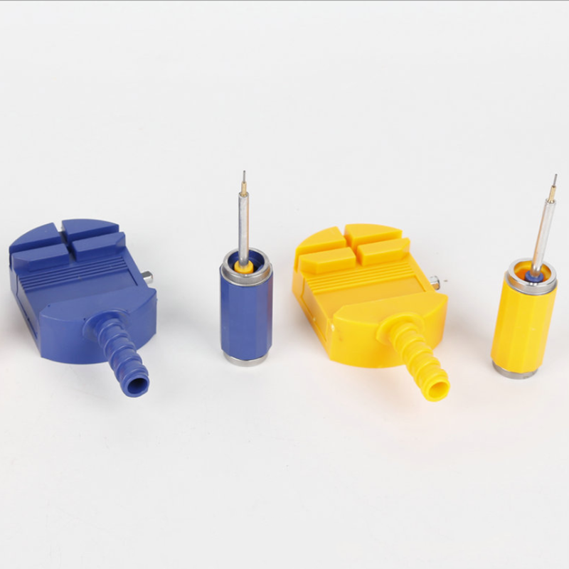 Brukervennlig: Klokkelenkefjerneren holder effektivt fast klokkereimer i forskjellige tykkelser. Bare juster den glidende delen med lenkepinnene, vri håndtaket for å presse nålen, og frigjør reimlåsene. De fleste klokkelenker har et "pil"-symbol som indikerer separasjonspunktet.