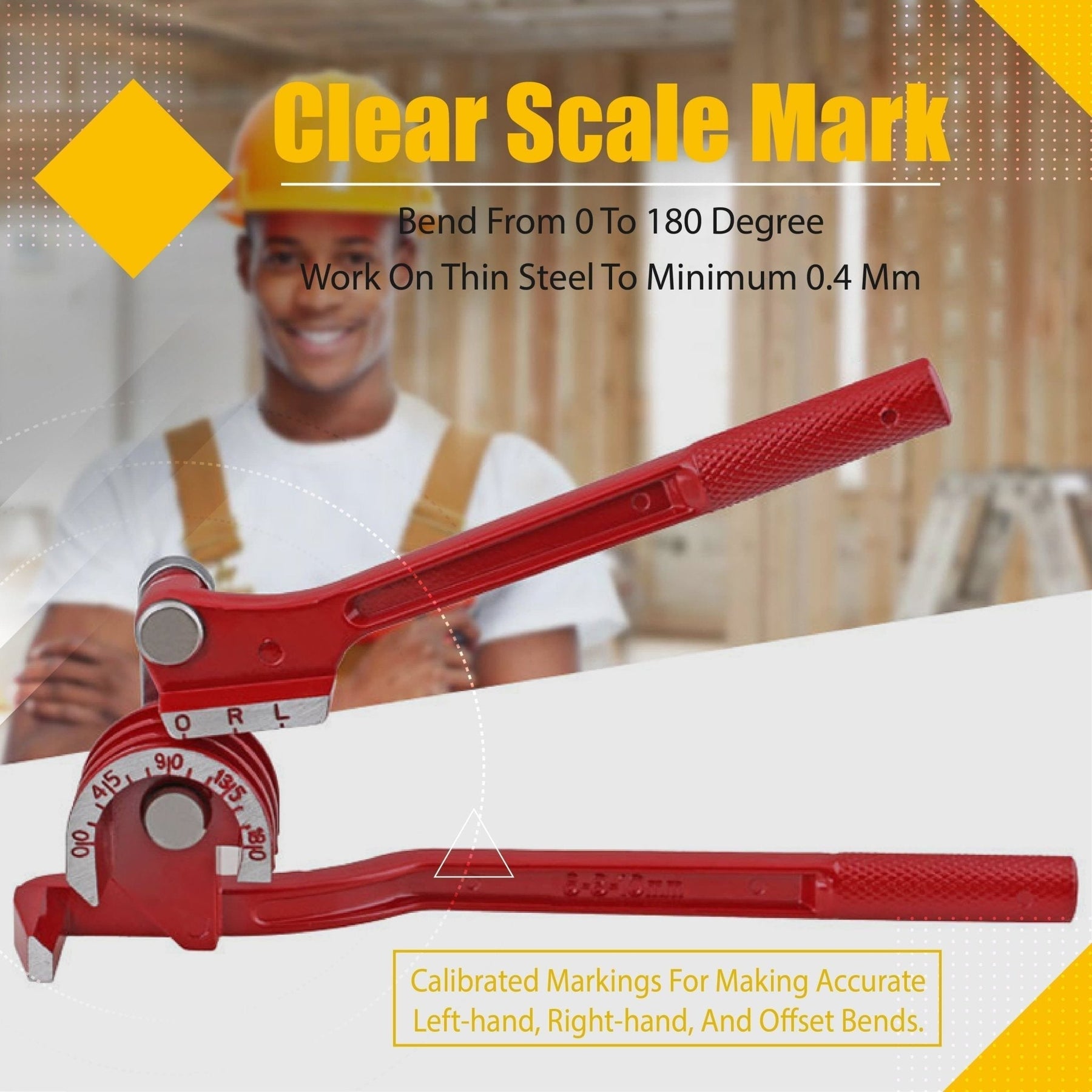 - Nøyaktig, to-hånds bøying opp til 180 grader, vinkler og bøyninger etset inn på verktøyet for å gi enkel og klar identifikasjon for enkel bruk.