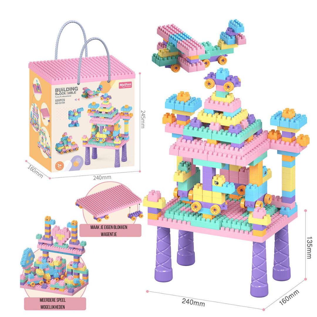 Fremkall ditt barns kreativitet med Creative Building Table Set! Denne pakken inneholder et leksusbord samt hele 500 byggeklosser, som gir uendelige sjanser til å bygge og leke. Enten det er fargerike slott, biler eller fly, tilbyr dette settet ubegrenset potensiale. Det er perfekt for lange stunder med moro, samtidig som det bidrar til å utvikle ditt barns motoriske ferdigheter og romlig forståelse.
