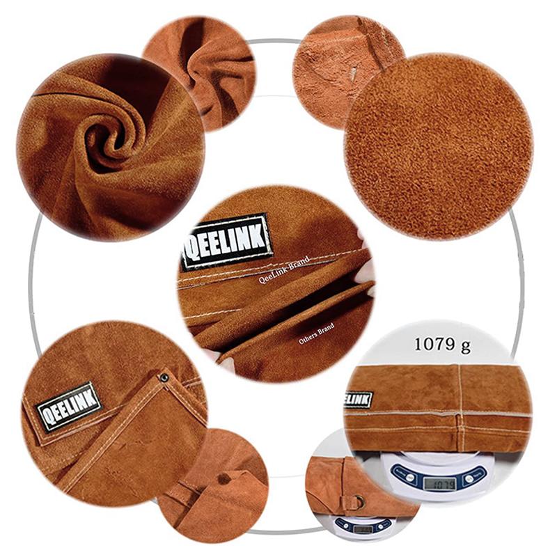 - EXTRA PROTECTION: Heat and spark resistant strong split cowhide welding apron. Extra long (61 cm wide x 91 cm high) full-length apron protects you up to the knee while you work.