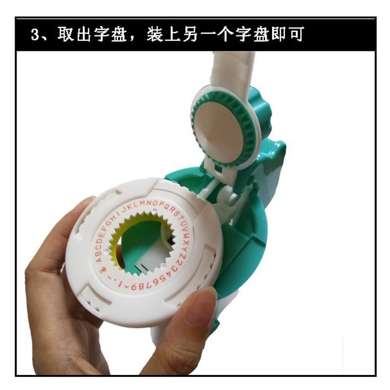 - Denne etikettmakeren har en hjul for store bokstaver og en for små bokstaver og leveres med én komplementær tape i matchende farge for å komme i gang.
