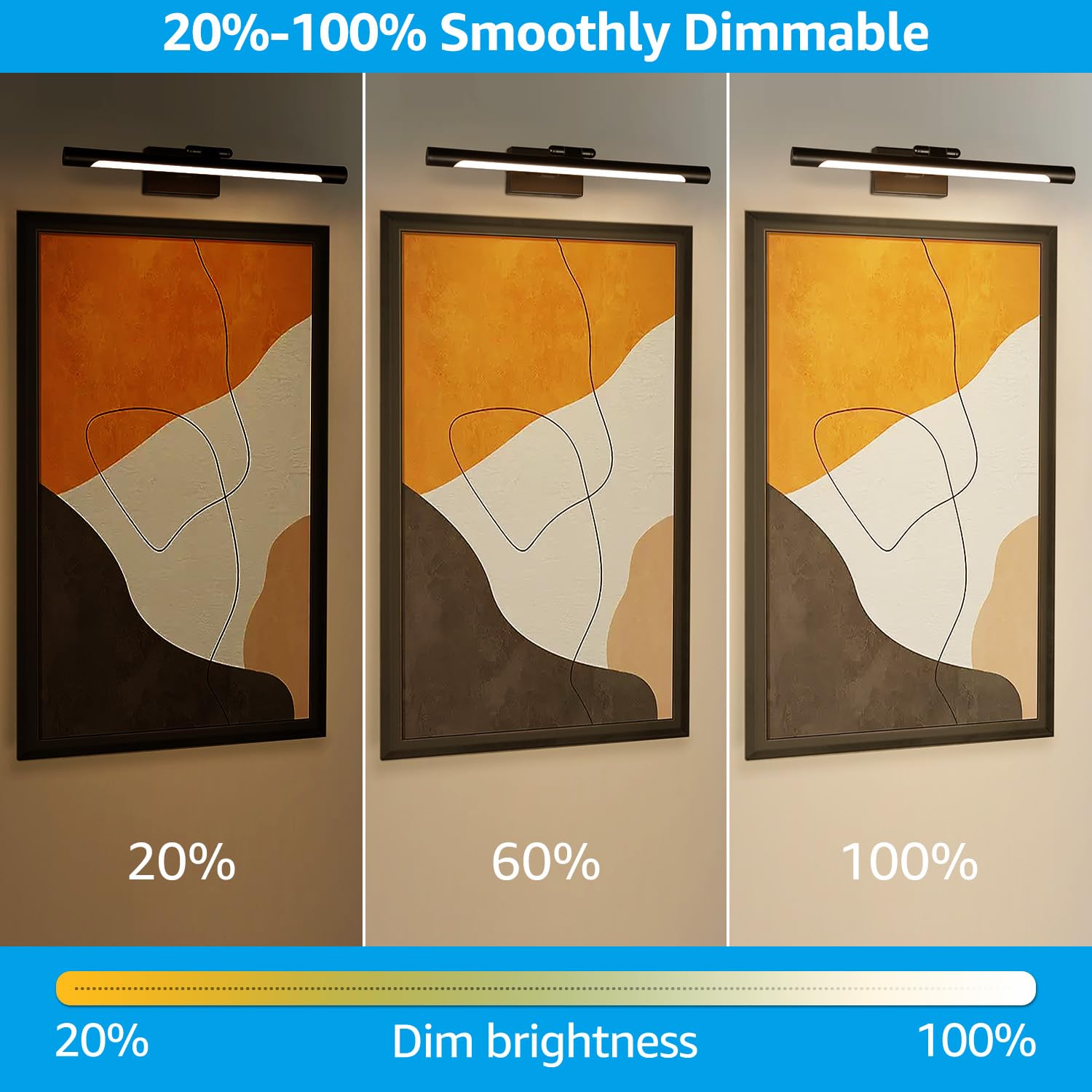 - Høy CRI90 & Dimmbar: Med en høy fargegjengivelsesindeks på 90 og jevn dimming, fremhever denne lampen maleriene, plakatene og diplomene dine på en fantastisk måte.