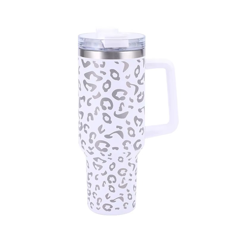 Norvo | Leopard Print Isolert Tumler med Håndtak og Strå 40oz Rustfritt Stål