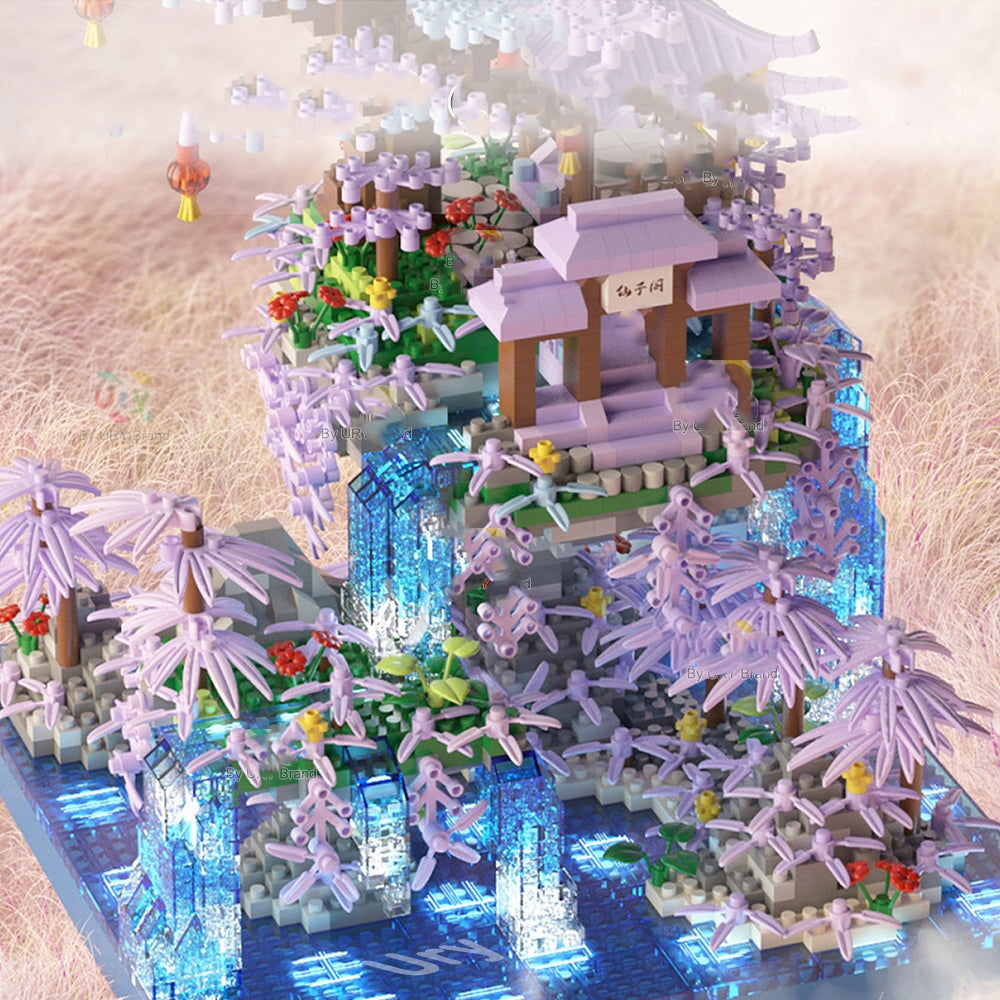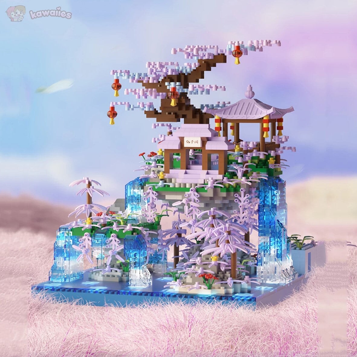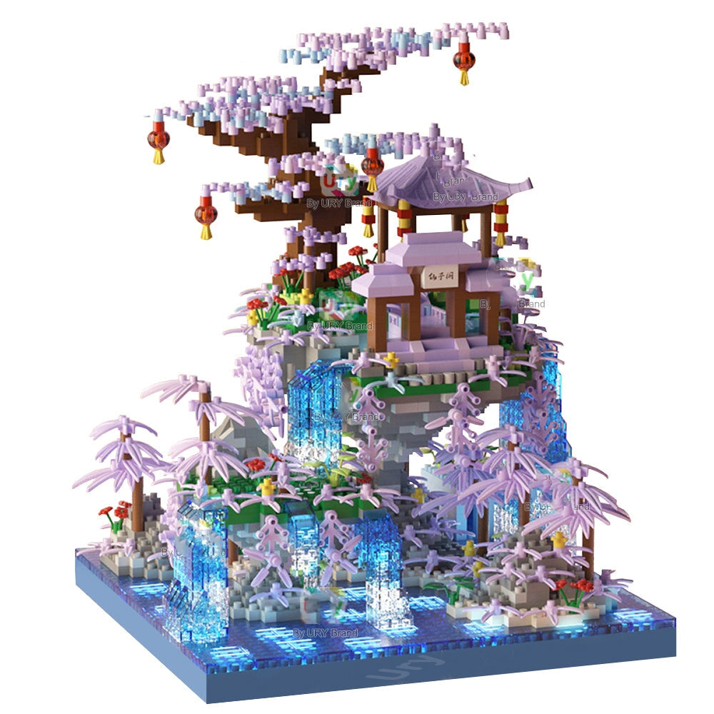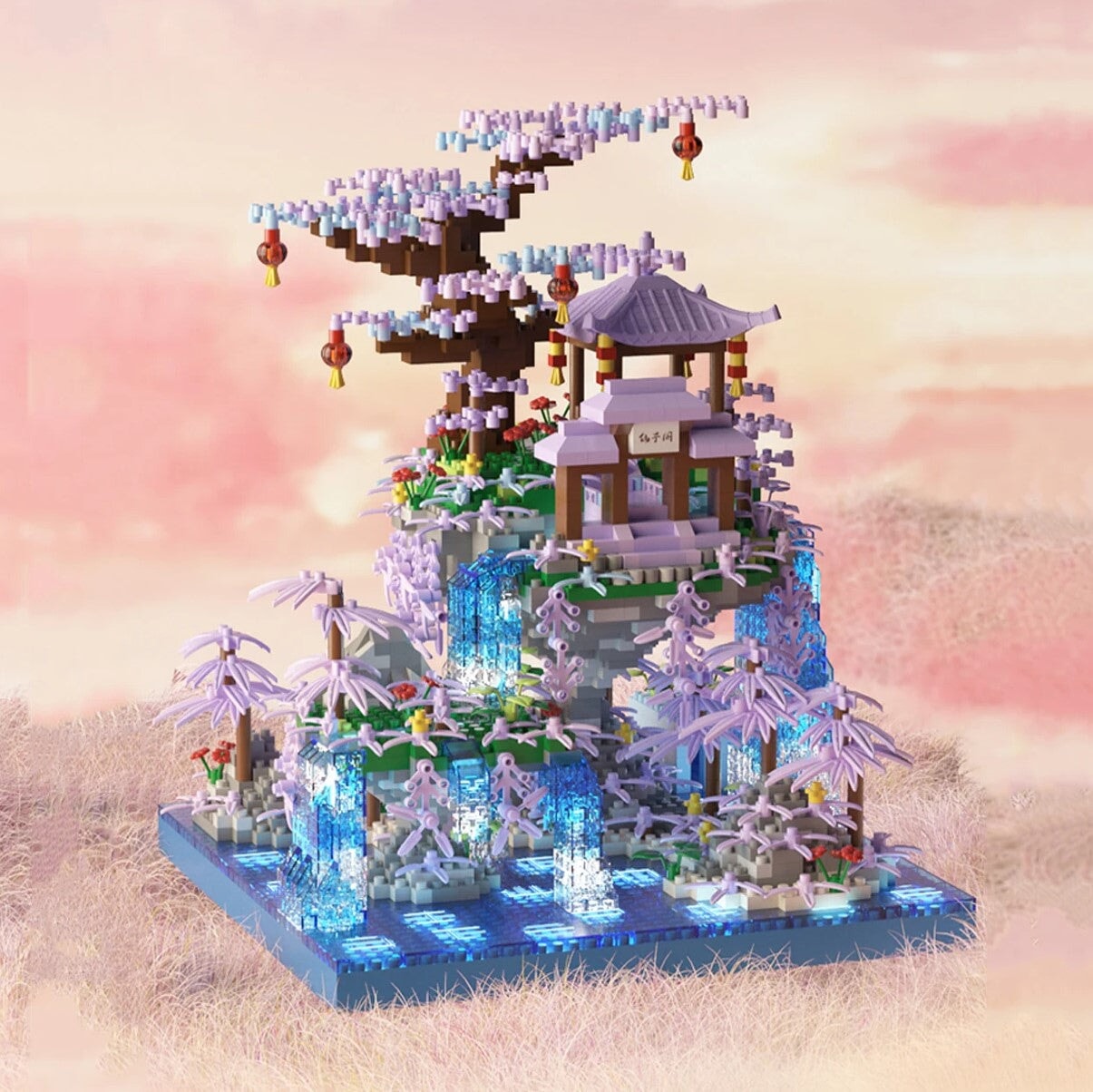 Vis frem dette fantastiske Flytende Øy byggesettet fylt med lilla sakura-trær på rommet ditt etter at du har satt sammen 2430 brikker. Det er ikke nødvendig å vente hvert år til mars for å se denne fascinerende scenen med japanske Sakura-trær når du kan ha det på rommet ditt hele året. Med et lilla paviljong som flyter på himmelen med fosser og sakura-trær.