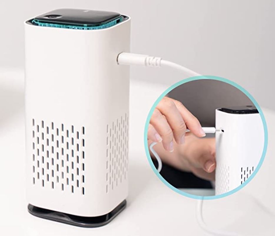 Luftrenseren kan enkelt lades med en USB-kabel, så du trenger ikke å bekymre deg for å skaffe nye batterier igjen!