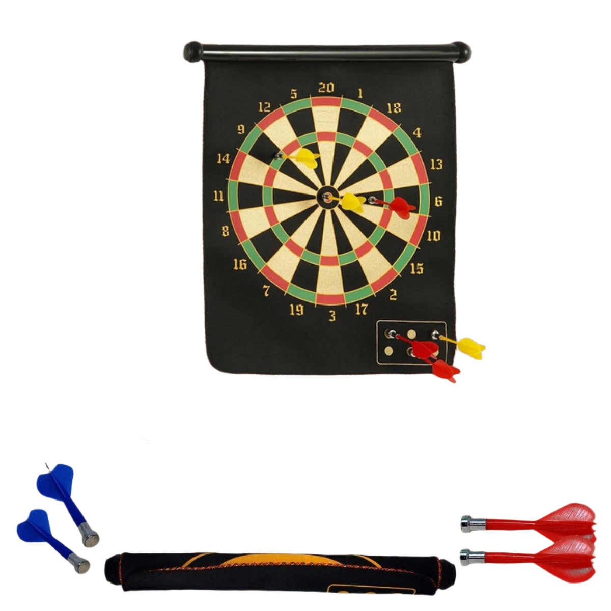 - Dobbeltsidig design: Den ene siden har et klassisk dartbrett, mens den andre siden byr på en Bull's Eye-utfordring.
