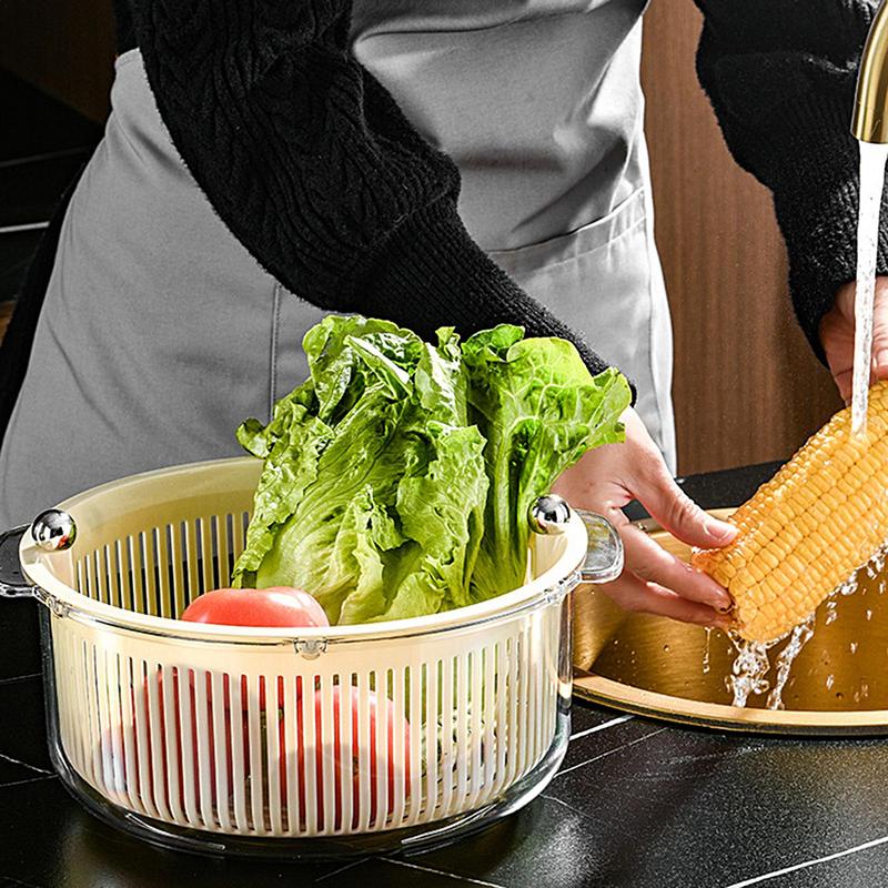 Si farvel til soggete salater og grønnsaker! Denne manuelle spin grønnsaksdreneringskurven er laget for å effektivt fjerne overflødig vann fra de nyvaskede grønnsakene og salatene dine. Bare snurr håndtaket, og sentrifugalkraften vil gjøre jobben for deg. En uunnværlig gadget for kjøkkenet som setter pris på enkelhet og effektivitet.