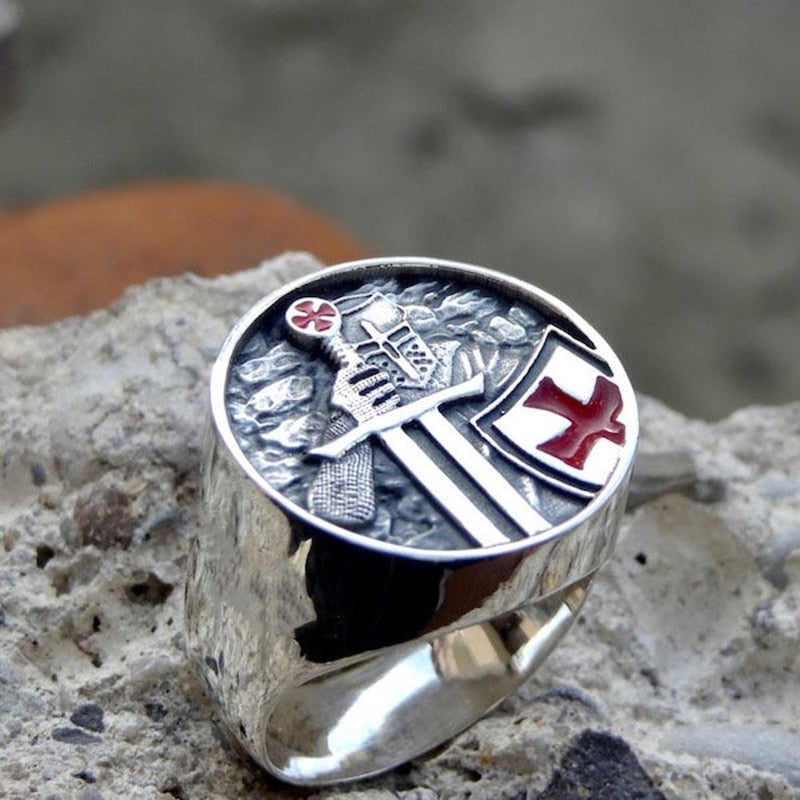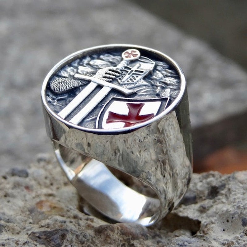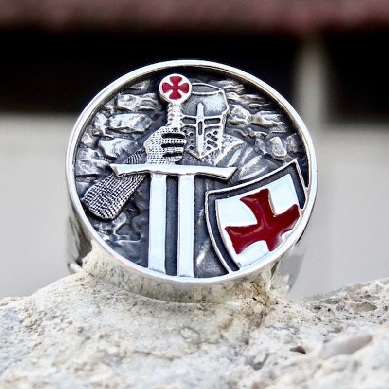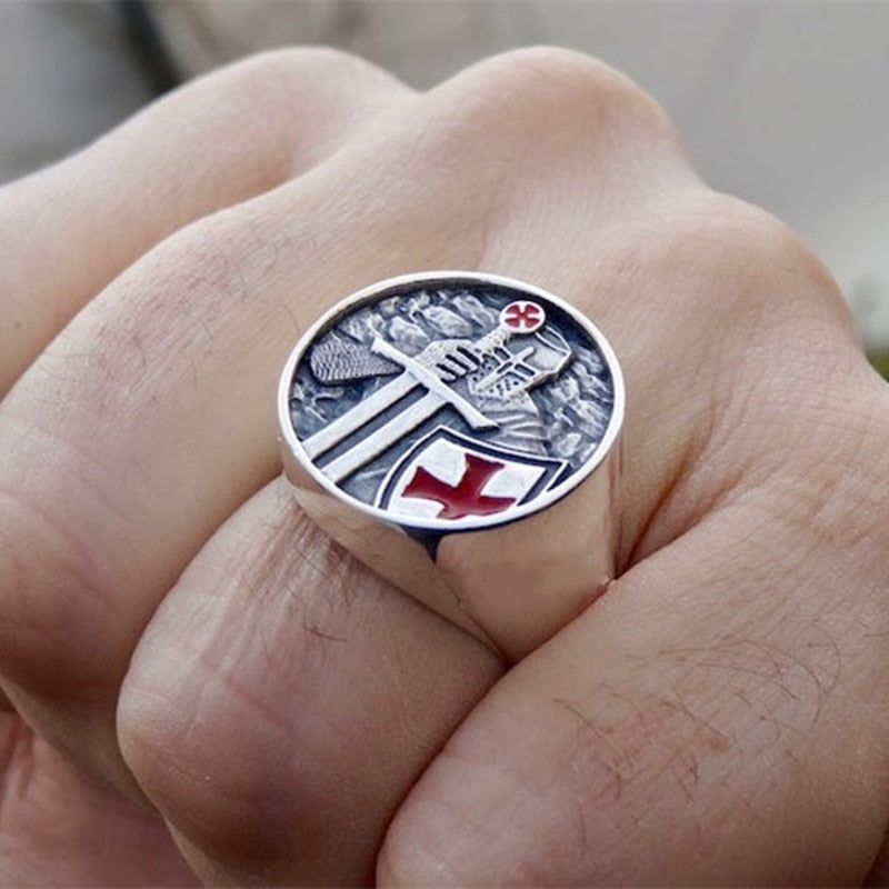 Norvo | Menns Tempelriddere Rød Kors 316L Rustfritt Stål Ringer for Menn
