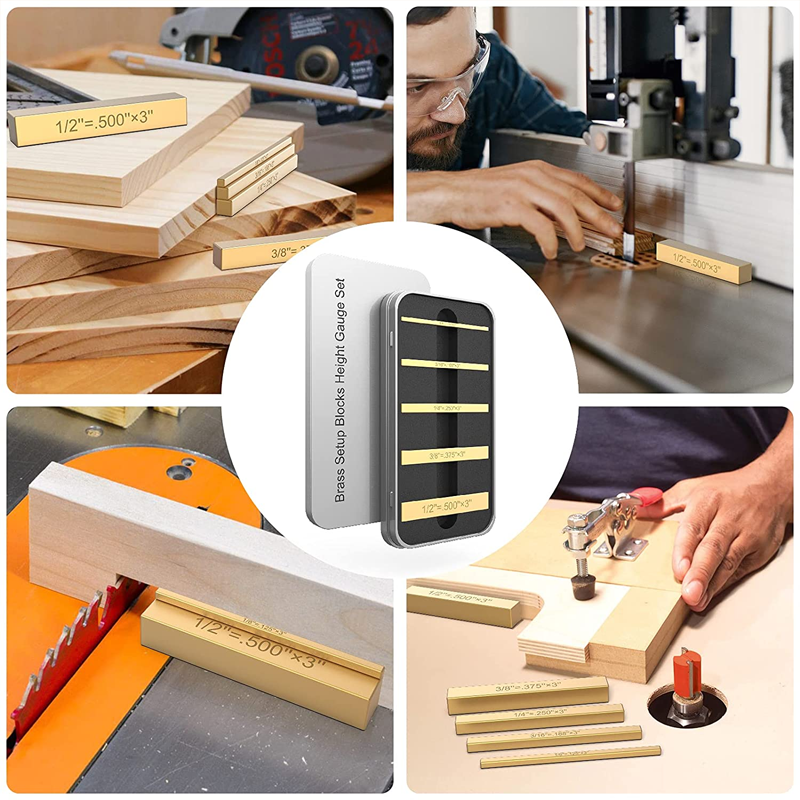 đ[Brukervennlig design]: Med fem messing mĂ„lebokser i ulike stĂžrrelser blir det enklere Ă„ justere gjerdet og bladet, noe som gir raskere og mer nĂžyaktige resultater sammenlignet med bruk av en kombinasjonslinjal.