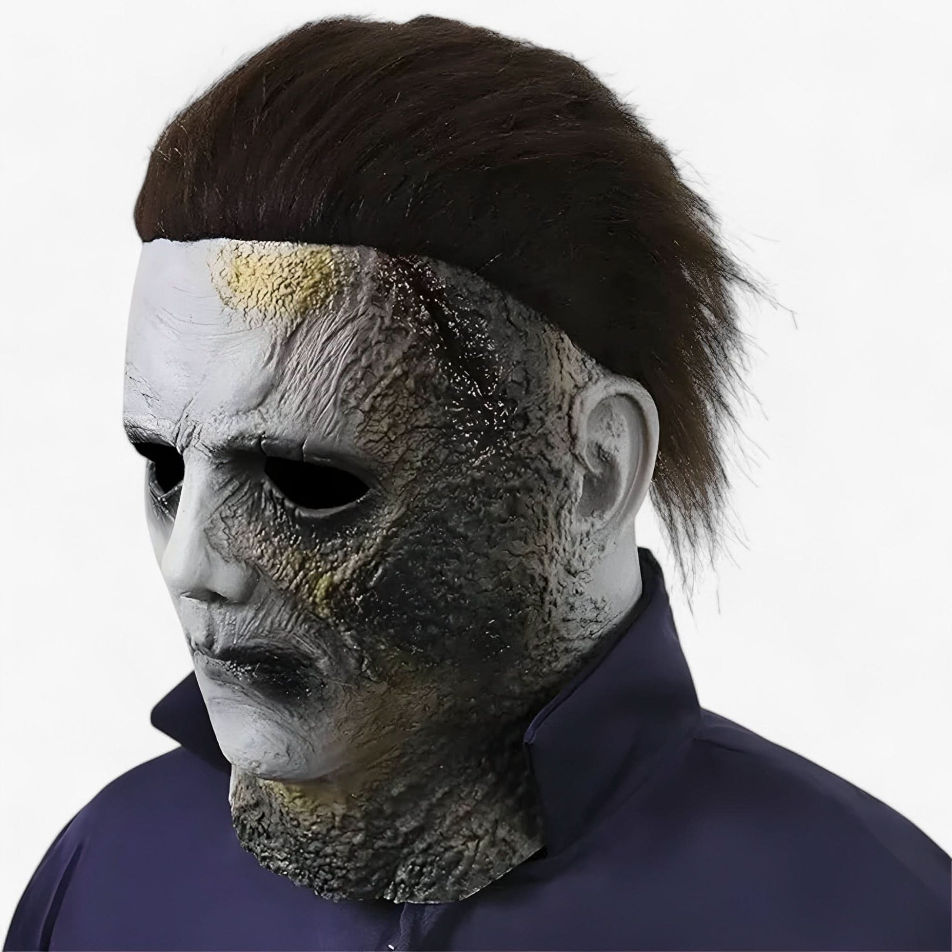 Denne masken fanger hver eneste skremmende detalj, fra de dystre brennmerkene til den realistiske latex-overflaten. Designet for å gjenskape Michael Myers' ikoniske utseende, vil den gjøre din Halloween- eller cosplay-feiring minneverdig.