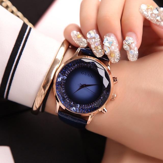 Norvo | Midnatt Blå Luksus Diamant (Syntetisk) Ekte Lær Dameklokke
