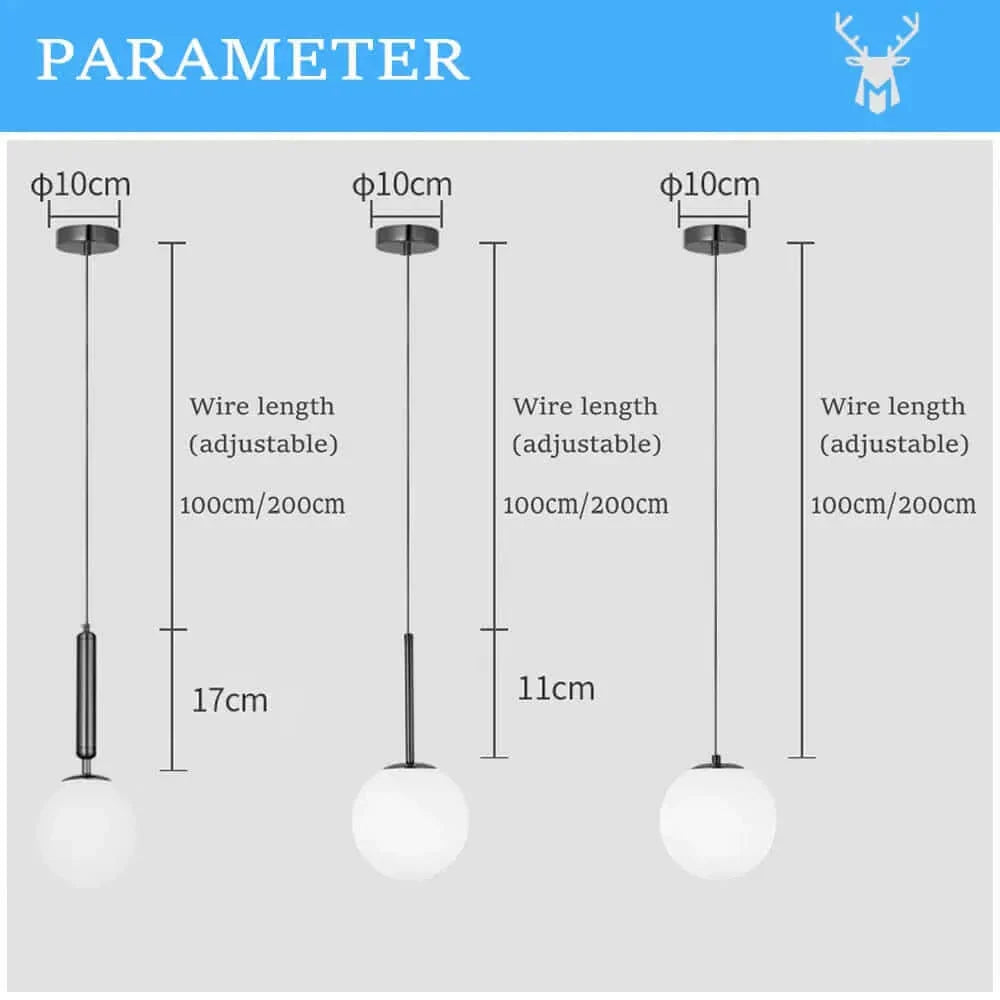 Mid-Century Modern Glass Ball pendellampene leveres med en 100 cm lang ledning, noe som gjør installasjonen enkel og gir deg muligheten til å justere høyden. De er kompatible med LED-pærer (ikke inkludert) og tilbyr en energieffektiv og varig belysningsløsning.