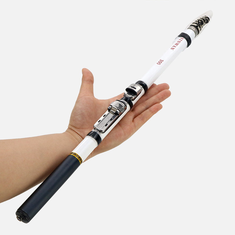 Utvidbar: Dette stilige fiskestangen kan justeres i lengde, noe som gjør den perfekt for situasjoner der fullstendig fiskeutstyr er lite praktisk. Sammenlagt lengde: 43cm-49cm. Utrakt lengde: 150cm-296cm.
