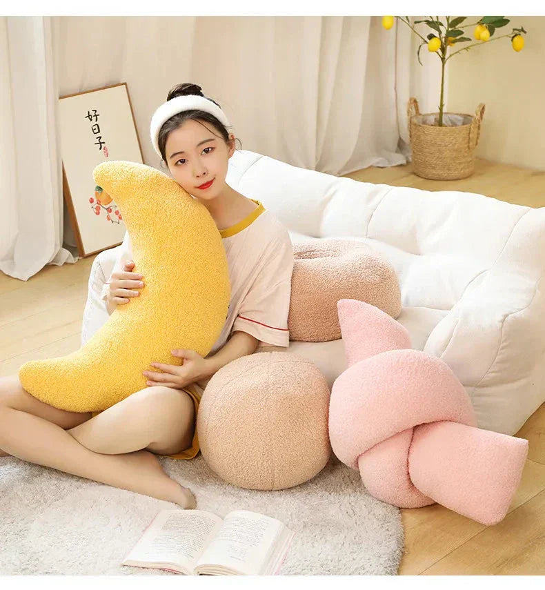 Hvis du føler at rommet ditt føles kjedelig og kunne trenge et preg av personlighet og komfort. Da har du funnet de rette pleddene! Disse pastell Moon Ball Pillow Plushies er den perfekte løsningen! Myke, stilige, og tilgjengelige i forskjellige former, de vil lyse opp hjemmet ditt og dagen din.