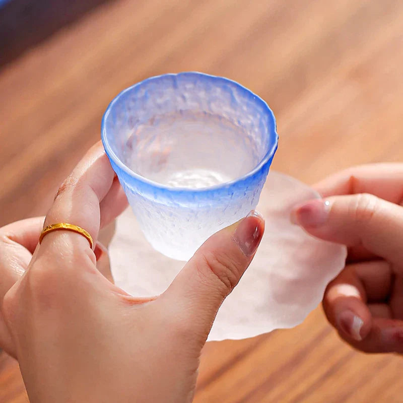 Mizu Glass Sake Set skaper en innbydende stemning for din sake-nyting. Denne vakkert utformede kolleksjonen inneholder en sake karaffel, en bøtte, fire koordinerende kopper med underkopper, og et brett, alt med en fantastisk ombre blå som elegant skifter fra en dyp azurblå til en mild hvit. Den teksturerte overflaten bidrar med et sofistikert element samtidig som den sikrer et komfortabelt grep. Bygget av premium glass, er dette settet perfekt for å servere både varm og kald sake, og fremhever de distinkte smakene og duftene av din favorittdrikk på en herlig måte.