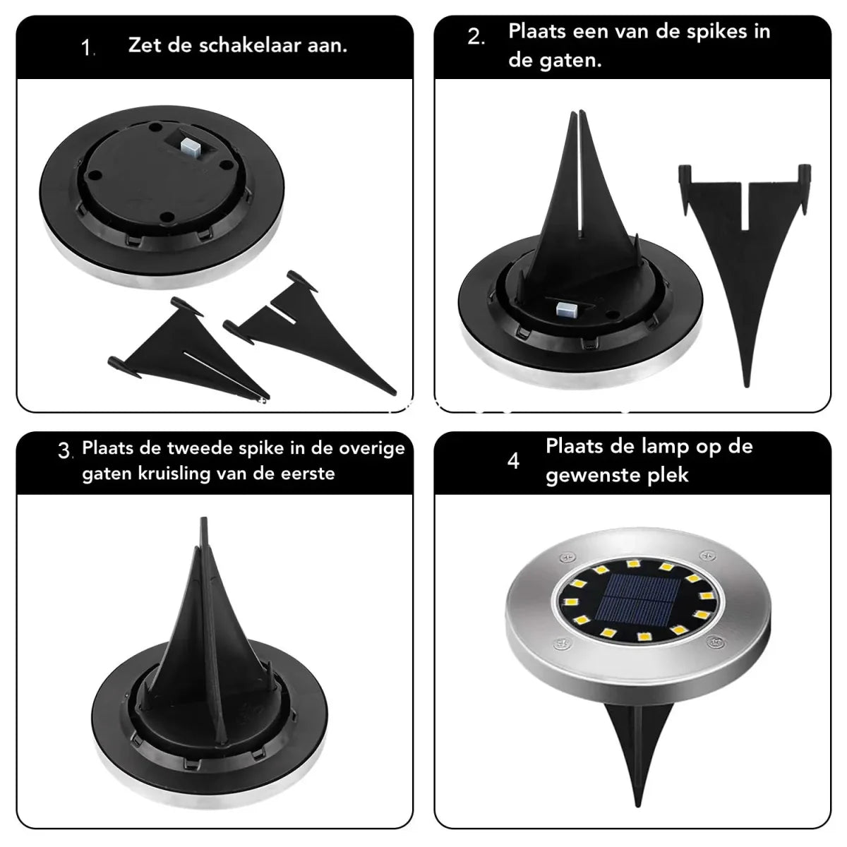 - 100% solenergi – Ingen elektrisitet nødvendig Utnytt kraften fra solen! Disse spotlights lader automatisk om dagen og lyser om natten—ingen ledninger, ingen ekstra kostnader for energi.