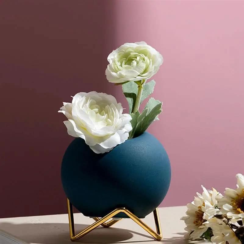 Norvo | Moderne keramisk plantepotte med metallstativ i livlige farger