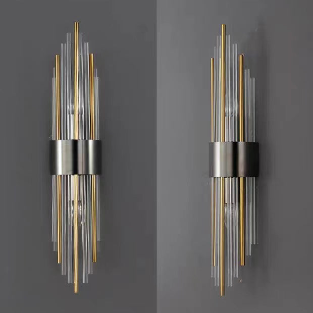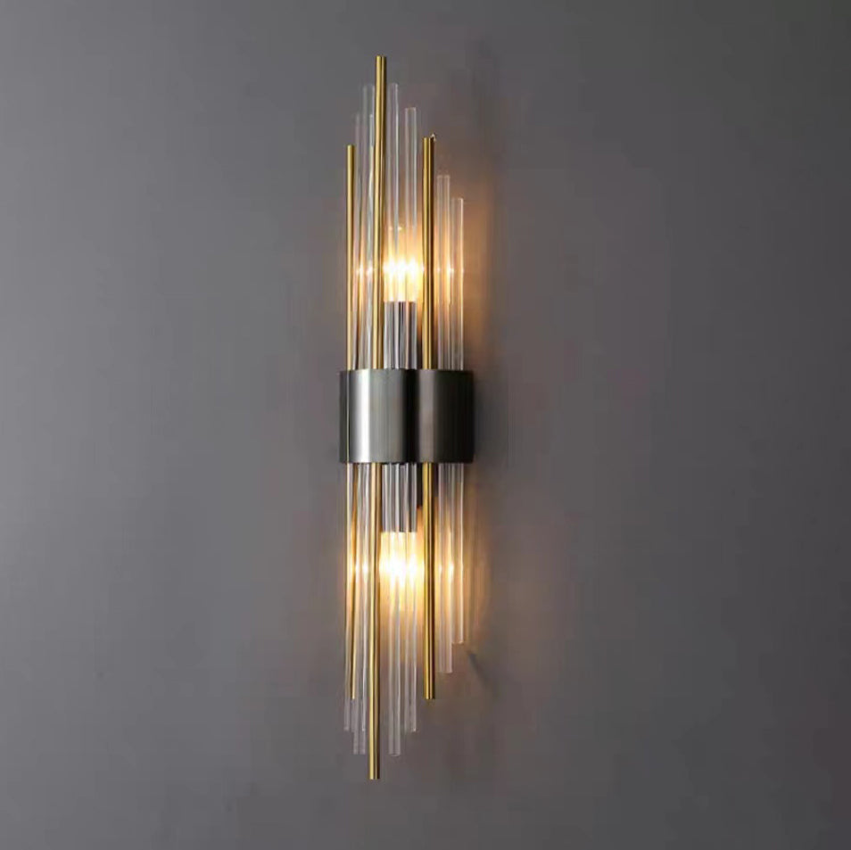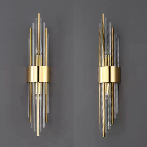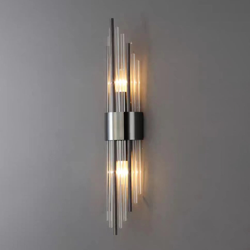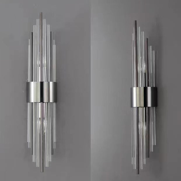 Norvo | Moderne Nordisk Rund Pipe Lang Rustfritt Stål Krystall 2-Lys Vegglampe Til Stue