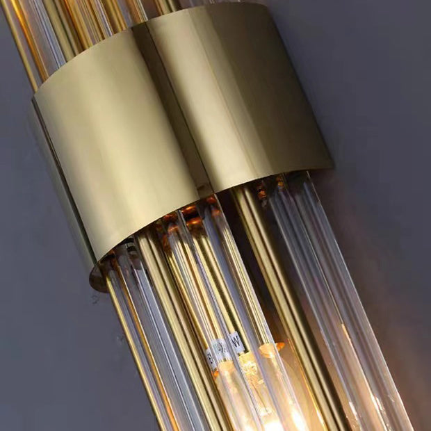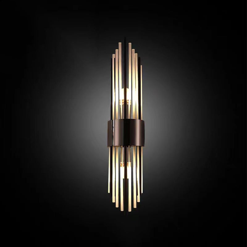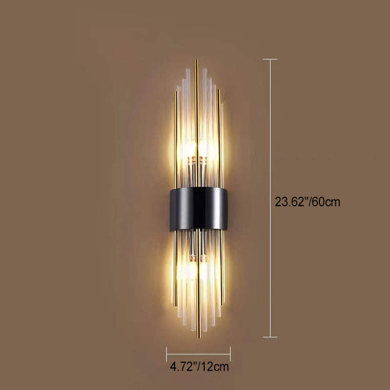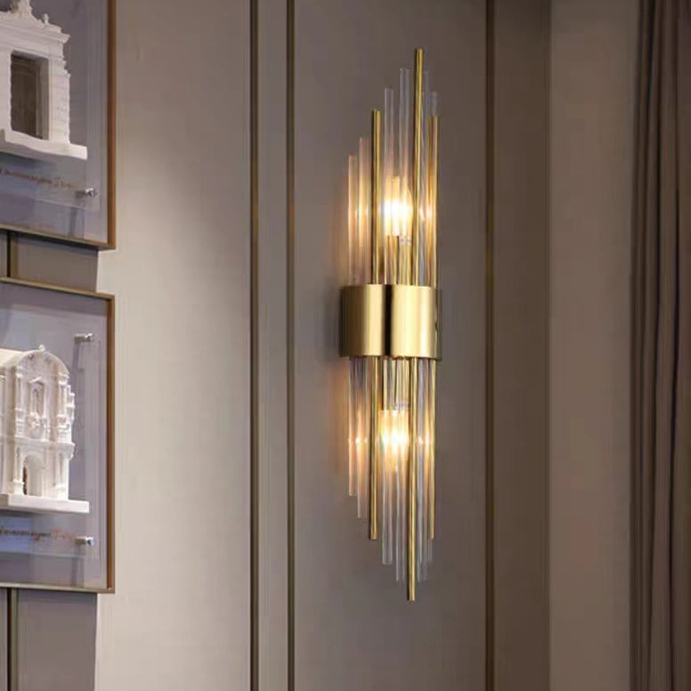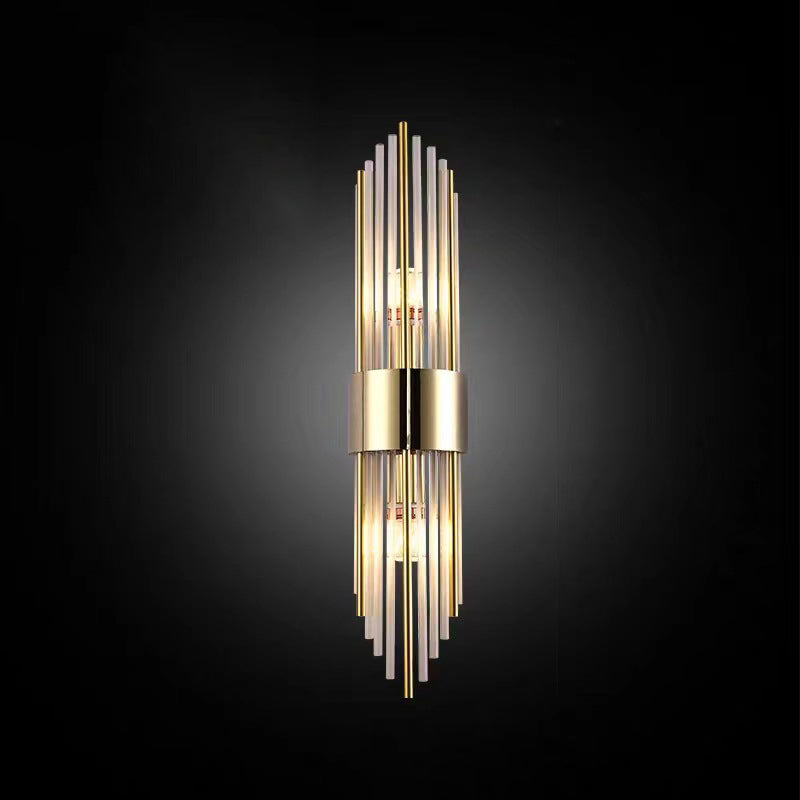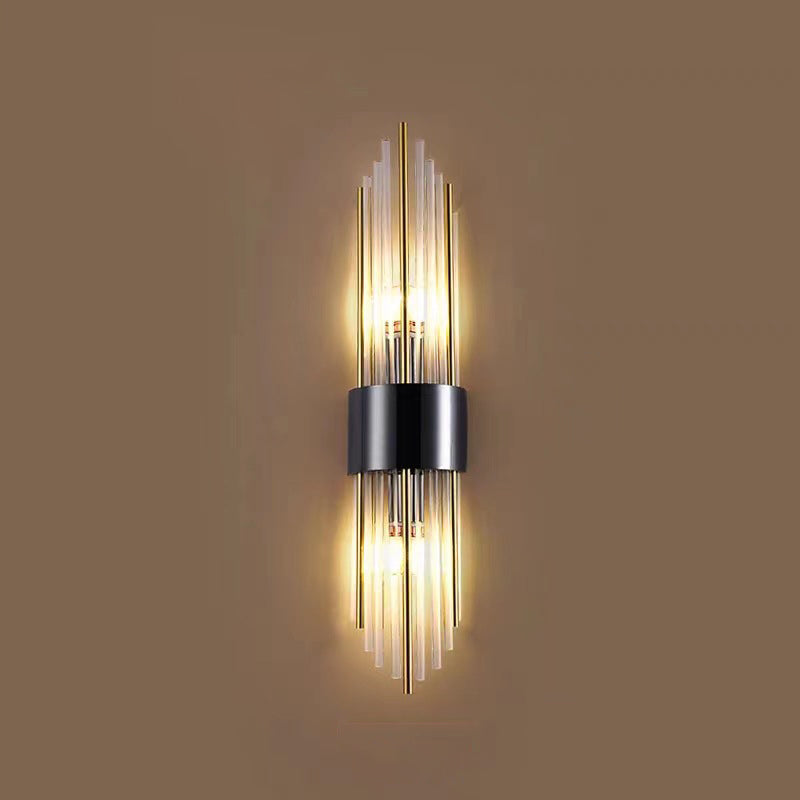 Norvo | Moderne Nordisk Rund Pipe Lang Rustfritt Stål Krystall 2-Lys Vegglampe Til Stue