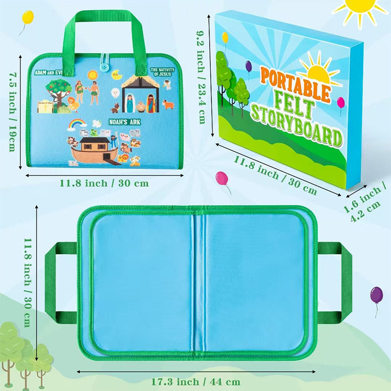 Montessori Bibelhistorier Filtebok kobler unge lærende med bibelske narrativer gjennom engasjerende, interaktive funksjoner og informativt innhold. Med myke filtkarakters og lette å forstå illustrasjoner, kan barna visuelt fordybe seg i historiene og aktivt delta i dem. Det fungerer som en perfekt pedagogisk leke for å forbedre forståelsen av bibelske fortellinger og fremme finmotorisk utvikling.